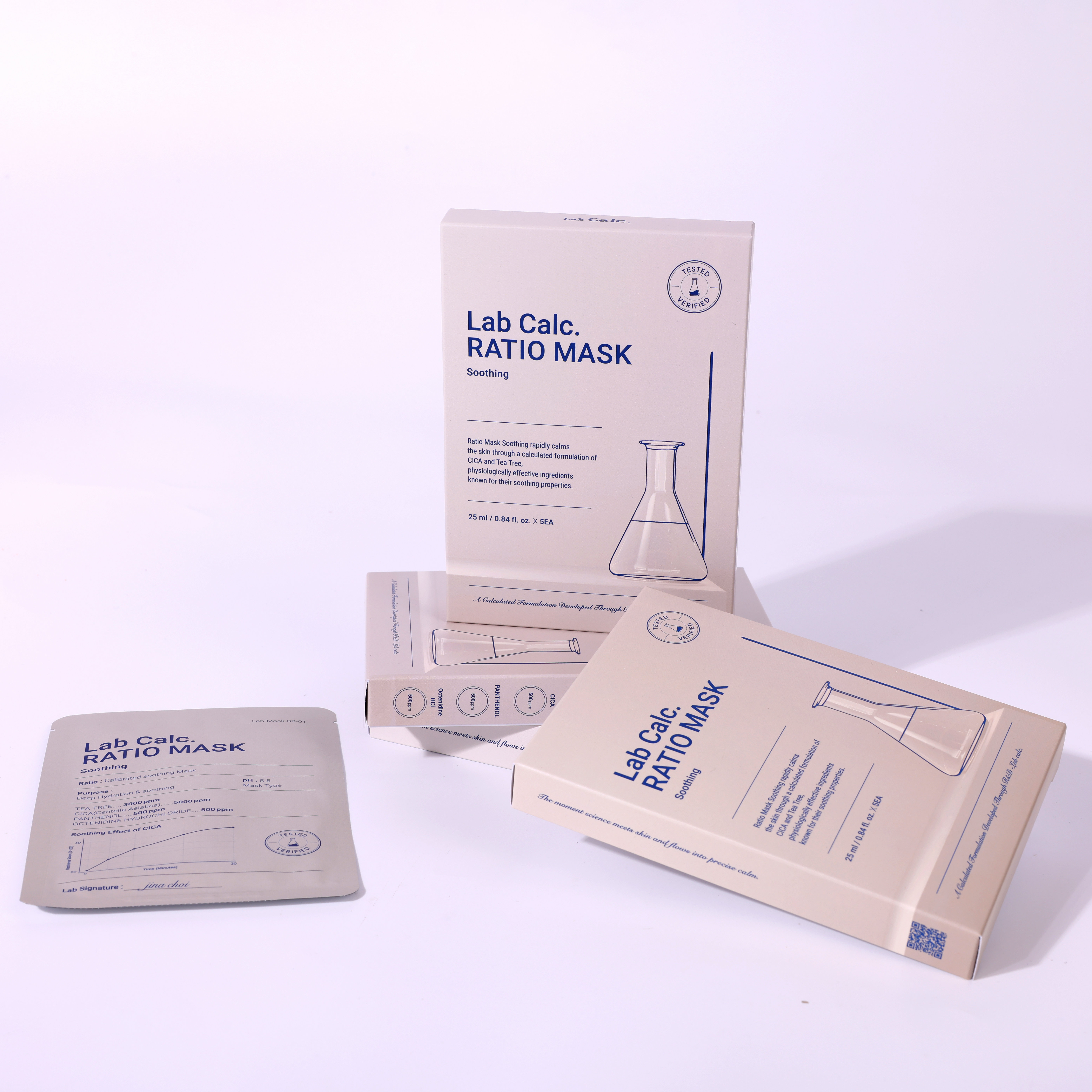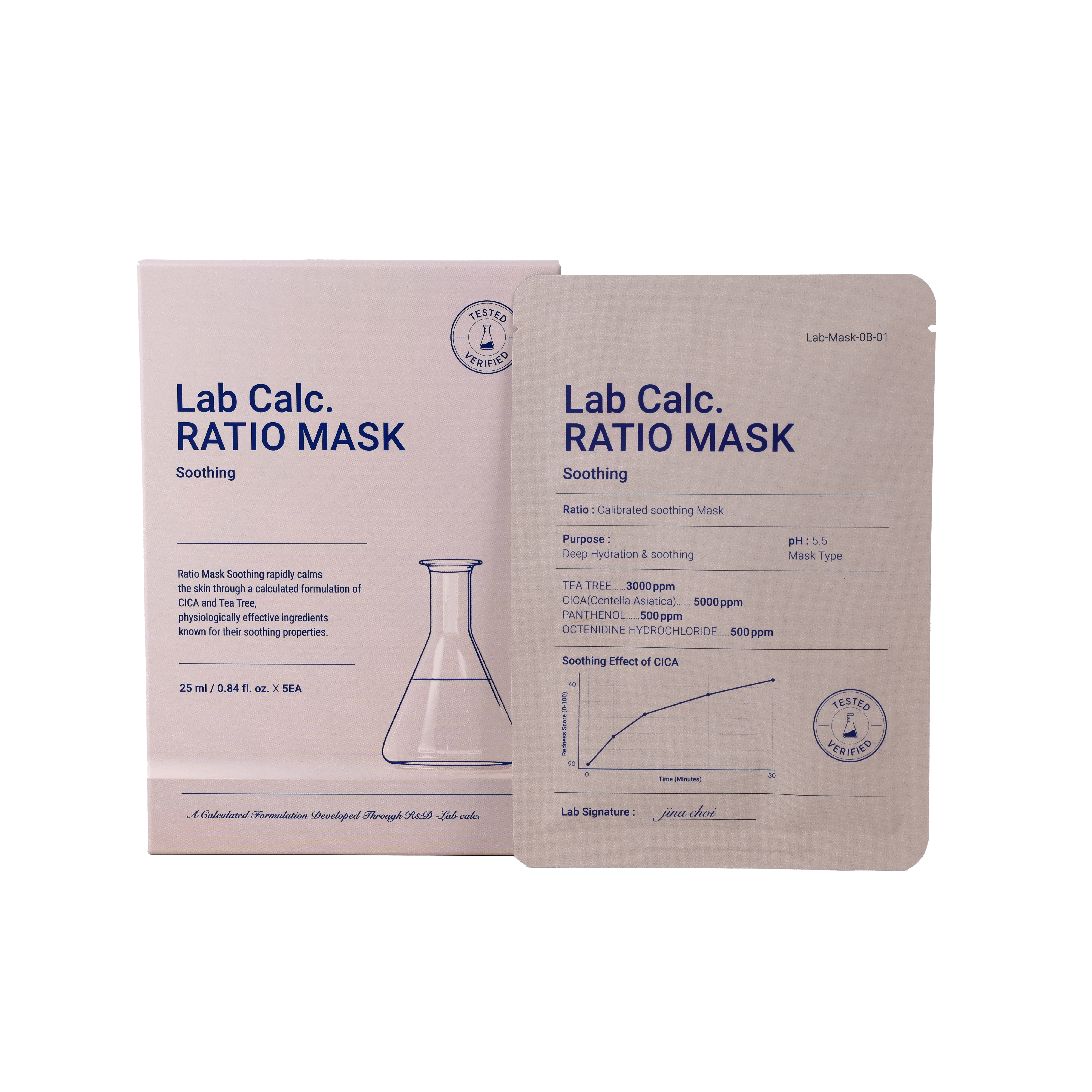 Lab Calc. Ratio Soothing Mask Pack은 외부 자극으로 인해 붉어지고 예민해진 피부를 빠 르게 진정시키기 위해 최적의 유효 성분 비율을 정밀하게 계산해 완성한 마스크 팩입니다.